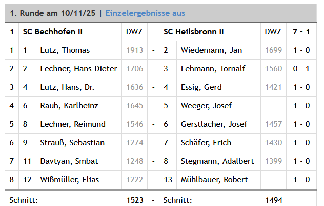 Am Samstag, den 11.10.25 hatte unsere zweite Mannschaft den ersten Wettkampf in der Qualifikationsgruppe Süd des Schachkreises Mittelfranken West.